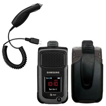 Holster Case w/ Ratcheting Belt Clip & Car Charger for Samsung Rugby II / 2 SGH-A847