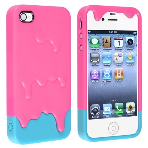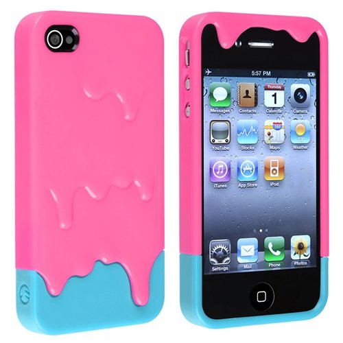 Pink 3d Melt Ice cream Skin Hard Case Cover for Apple Iphone 4 and 4s Protect Cell